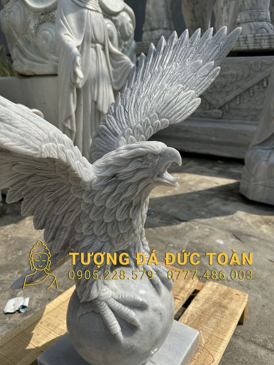 Hoàn thiện xong tượng Đại Bàng được chế tác trên nền đá cẩm thạch trắng tự nhiên 100%. Kích thước: cao 1m.