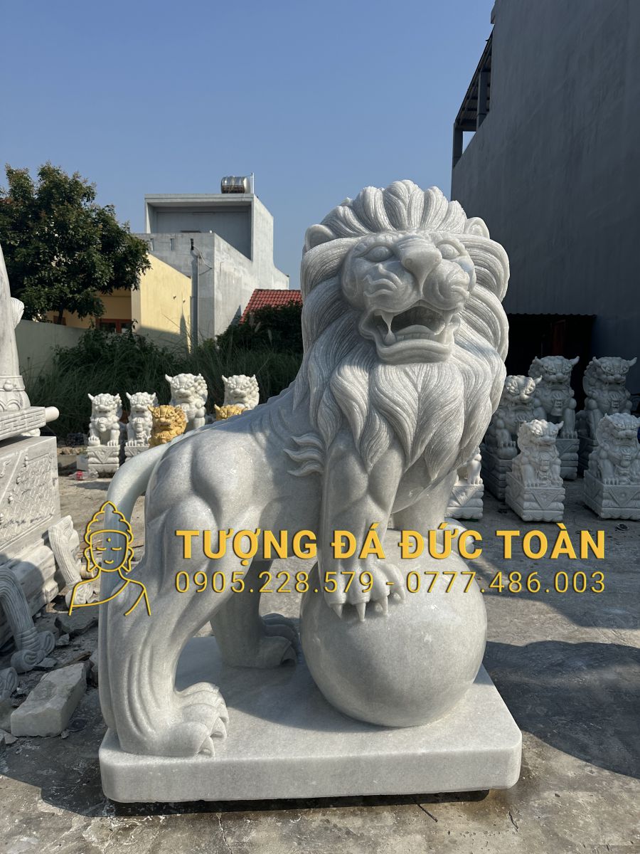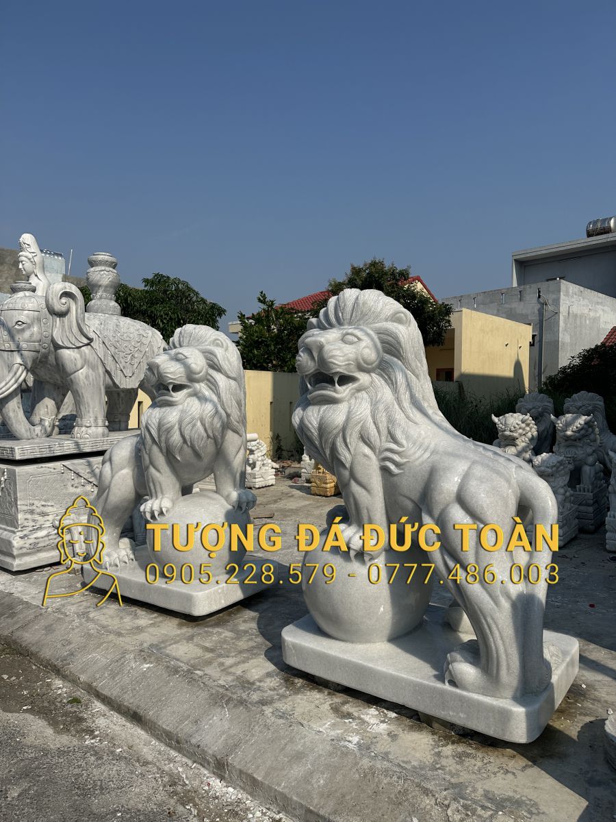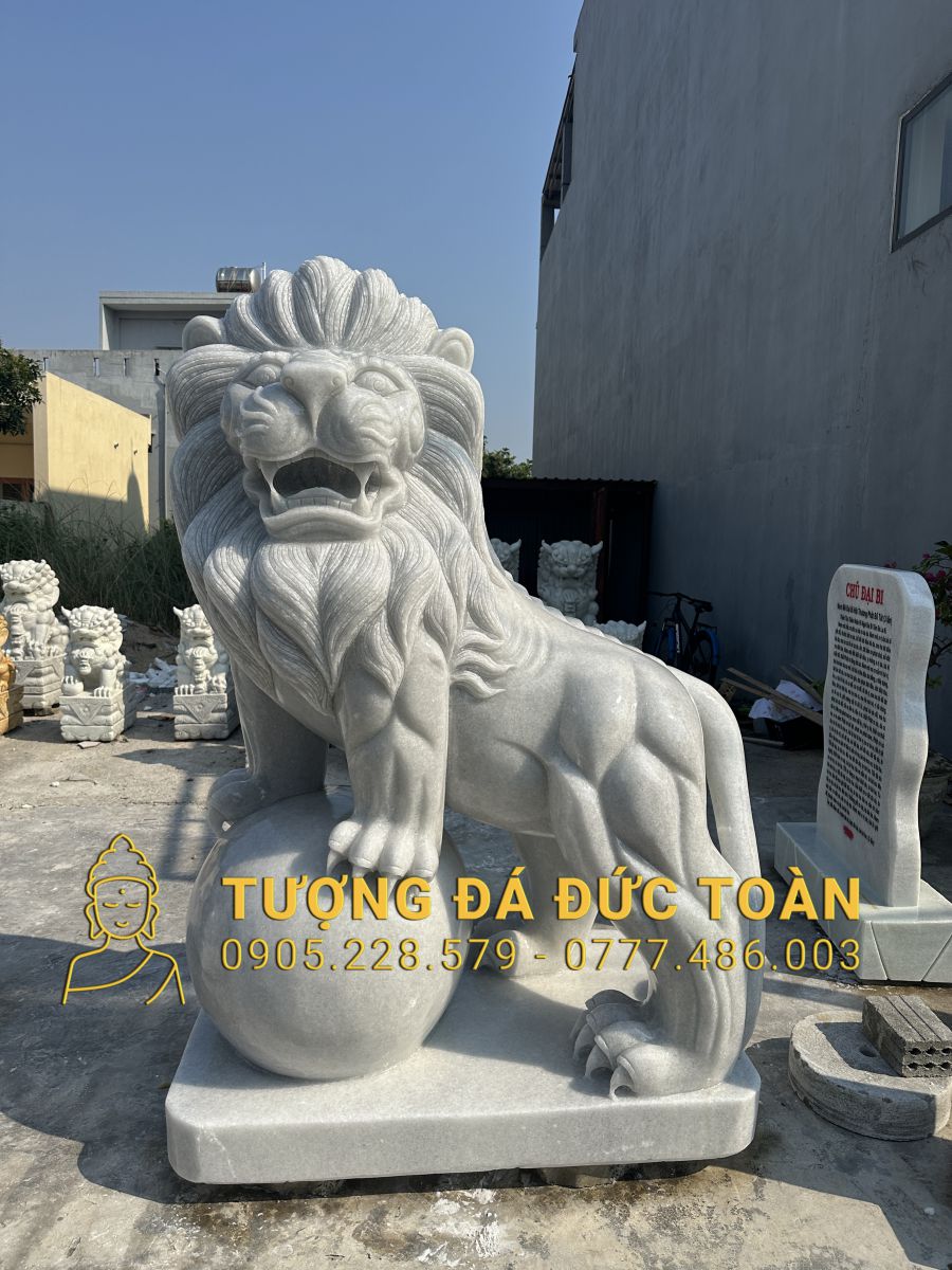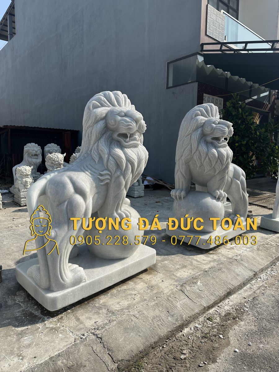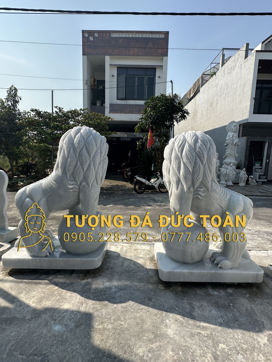 Hình ảnh sư tử được thể hiện đứng oai phong, đầu ngẩng cao, mắt nhìn thẳng, bờm xù uy nghi và thân hình săn chắc, lực lưỡng. Từng chi tiết như móng vuốt, bắp chân, râu, bờm và biểu cảm gương mặt đều được các nghệ nhân tại Đức Toàn điêu khắc tỉ mỉ, sống động và đầy khí chất. Dù ở bất kỳ kích thước nào – từ tượng nhỏ 60cm đến tượng lớn cao 2-3 mét, thần thái của sư tử vẫn luôn được truyền tải trọn vẹn, thể hiện sức sống mạnh mẽ và khí chất bảo vệ, lãnh đạo.